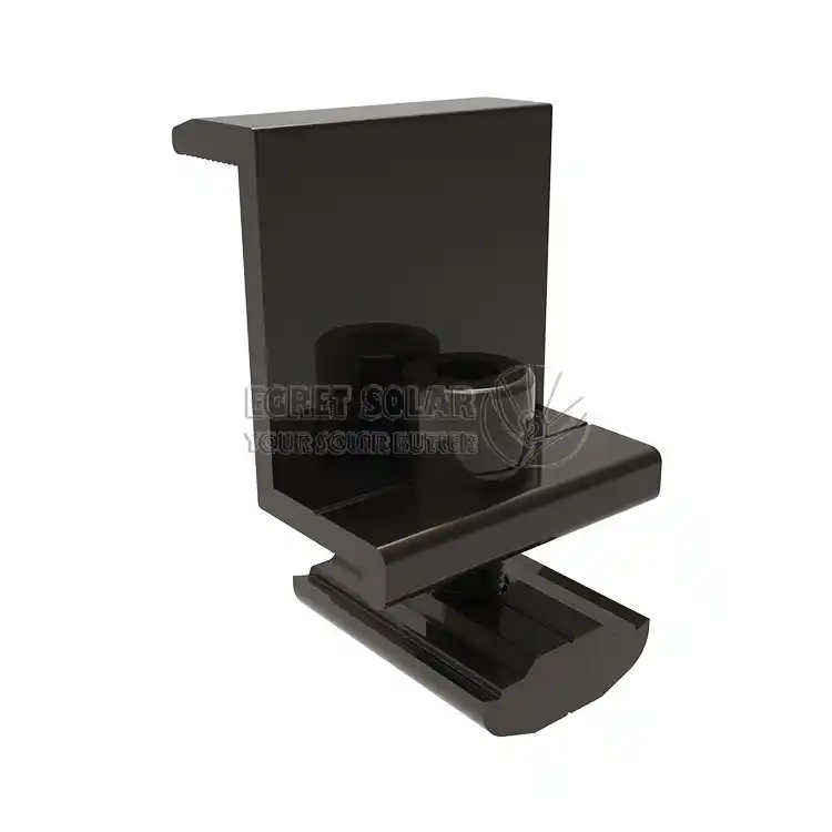 TheКрайни скоби наСлънчева чапла, подобно на блока със средно налягане, трябва да е съвместим с дебелината на рамката на компонента (обикновено 30-40 mm), може да бъдеПерсонализираноспоред различни инженерни решения и е направен от материал от анодизирана алуминиева сплав, за да се избегне корозия с рамката на компонента и в същото време да играе изолационна роля.