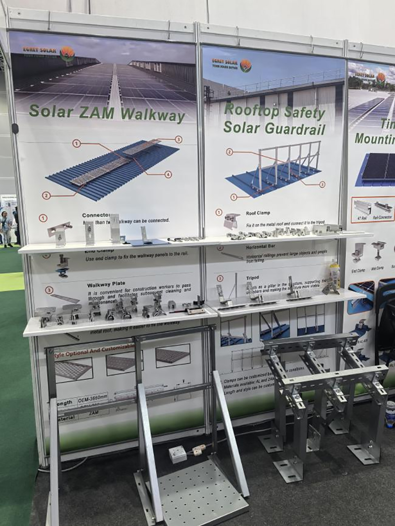 Много клиенти на това изложение предпочетоха навеси за автомобили Solar от въглеродна стомана. И дветееднолицеви и двулицеви навесибяха изложени на показ. Едностранните навеси могат да се монтират в частни дворове и да се свържат със станции за зареждане на превозни средства с нова енергия. Двустранните навеси могат да бъдат монтирани в паркингите на търговски центрове, осигурявайки повече паркинги и станции за зареждане. В сравнение с конвенционалните стоманени навеси с цветно покритие, слънчевите навеси предлагат по-добра изолация, намалявайки дискомфорта на пешеходците, качващи се на борда, и удължавайки живота на пластмасовите компоненти като чистачките на предното стъкло. Произведеното електричество може да се продава на мрежата или да се използва за лична употреба, създавайки взаимноизгодно решение. Единичната цена на соларния навес за кола варира от $0,08/W до $0,13/W. Сключени са договори с няколко клиента на място за закупуване на пълни шкафове.
